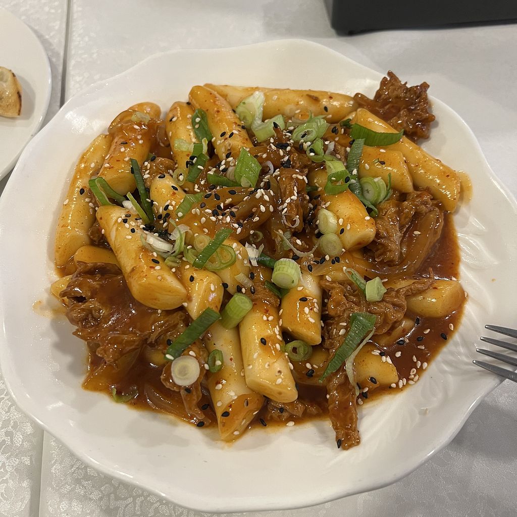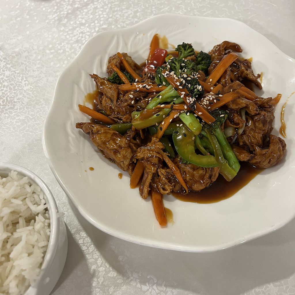 Spicy Vegan Chicken in Tao sauce on Rice - Outstanding dish and the vegan chicken was nice. A little too sweet after taste for us. But on the whole amazing. The veggies and vegan chicken are just crazy.