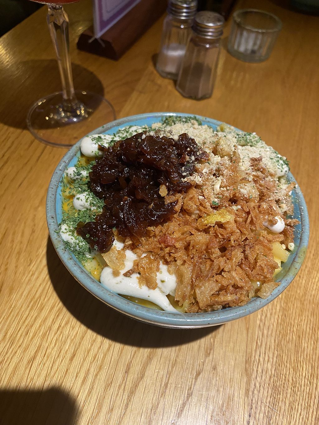 Amazing food, the chick'n bites make you question if it's actually chicken. Cool place tucked away, quite small, just behind the Manchester Arena. Perfect for pre-gigs. Really popular, they had to turn several people away without reservations, so I thoroughly recommend booking ahead. You won't be disappointed. My only regret is not being able to order everything.