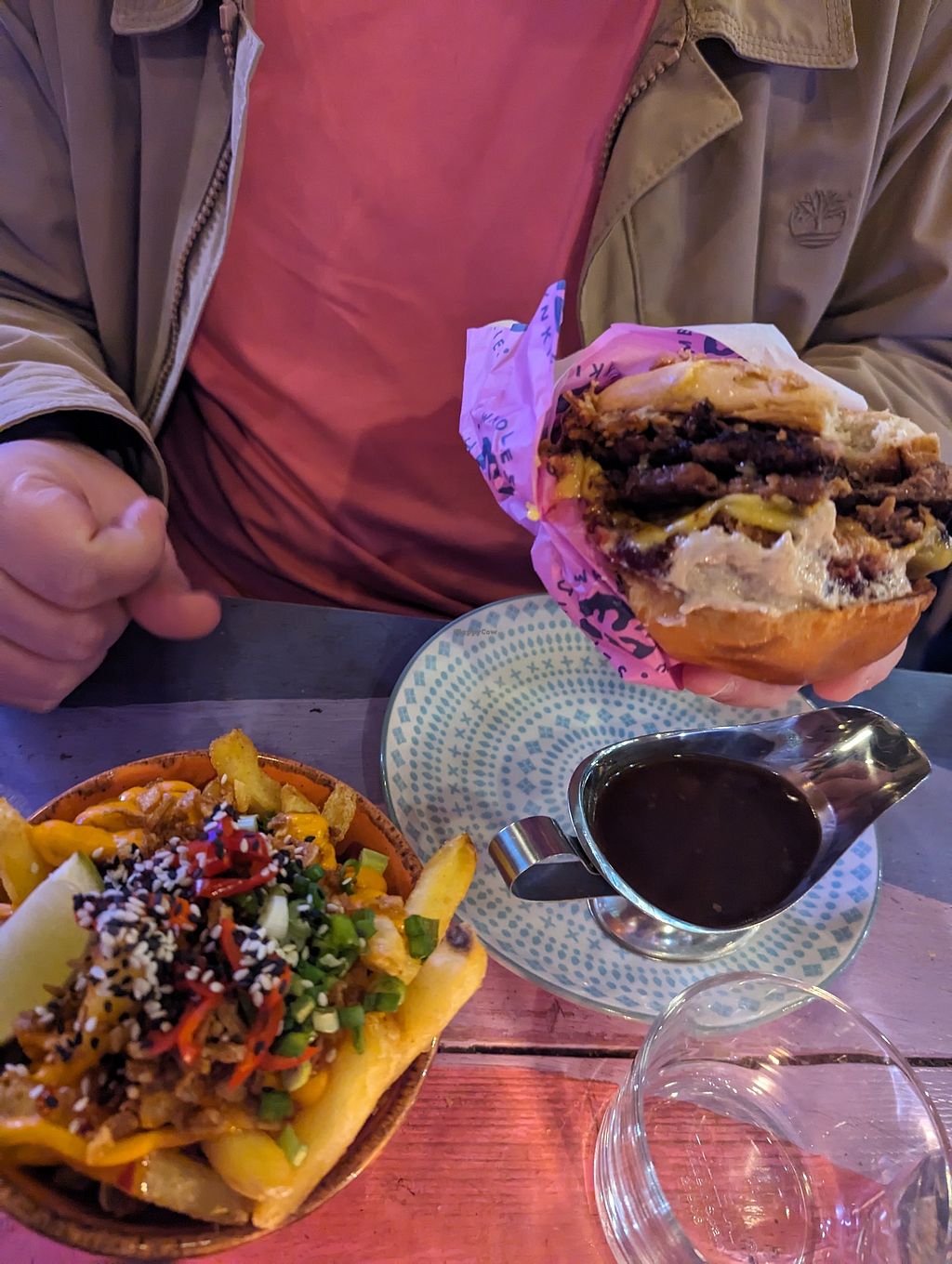 Great atmosphere and cool venue. If you like burgers, you'll be spoilt for choice here. The truffle burger was delicious, and the chips were incredible, but it's very expensive.