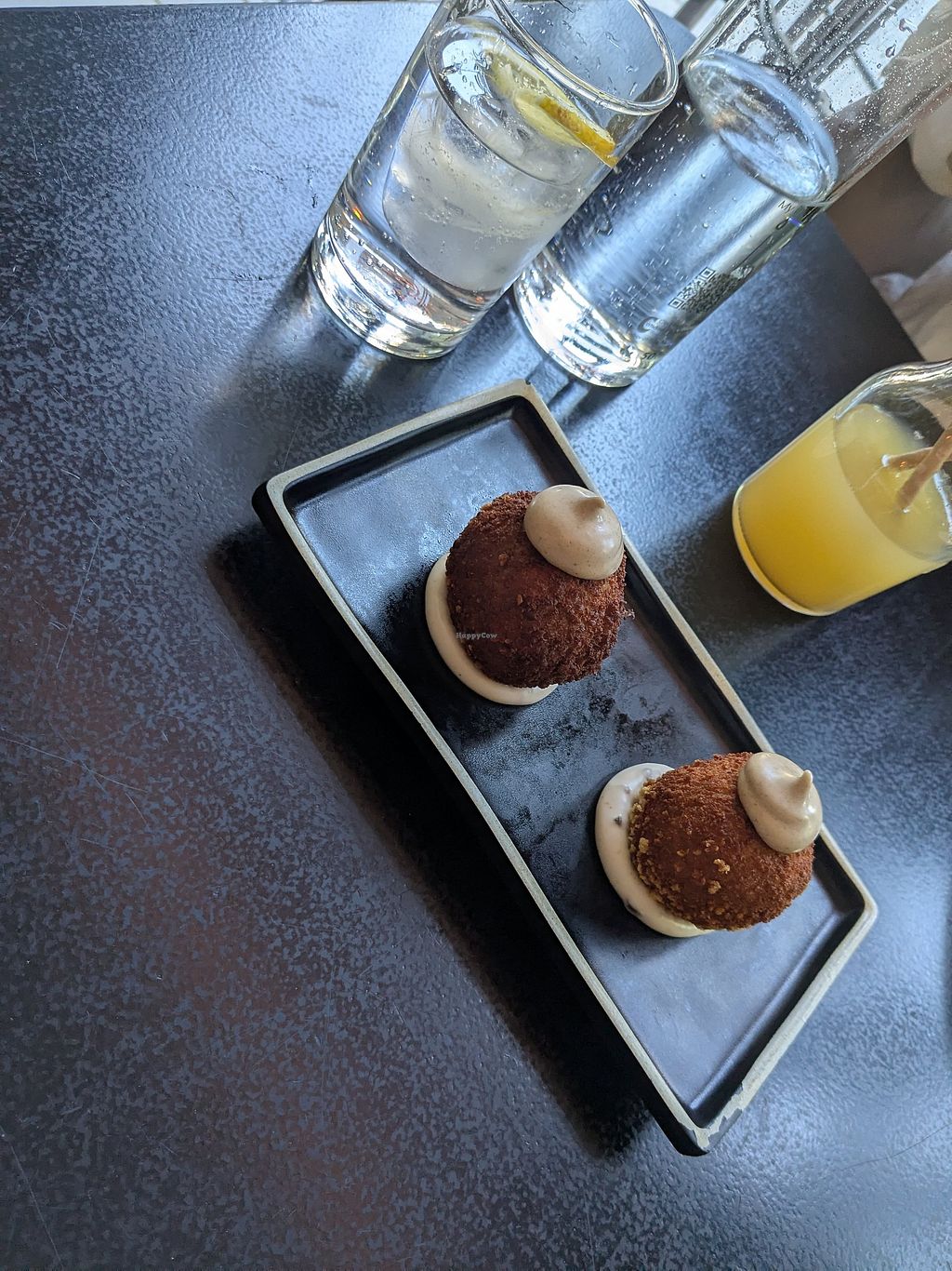 Menu looked good but dishes somewhat disappointing for what we paid. We had the pizza with vegan beef topping, the base was soggy and hard to finish. The topping was tasty but not enough of it, and it contributed to the sogginess. Shame. We also ate the not chicken burger with bun and patatas bravas. Tasty again but burger could have been more substantial, as heavy on the potatoes and bun. Good wines.