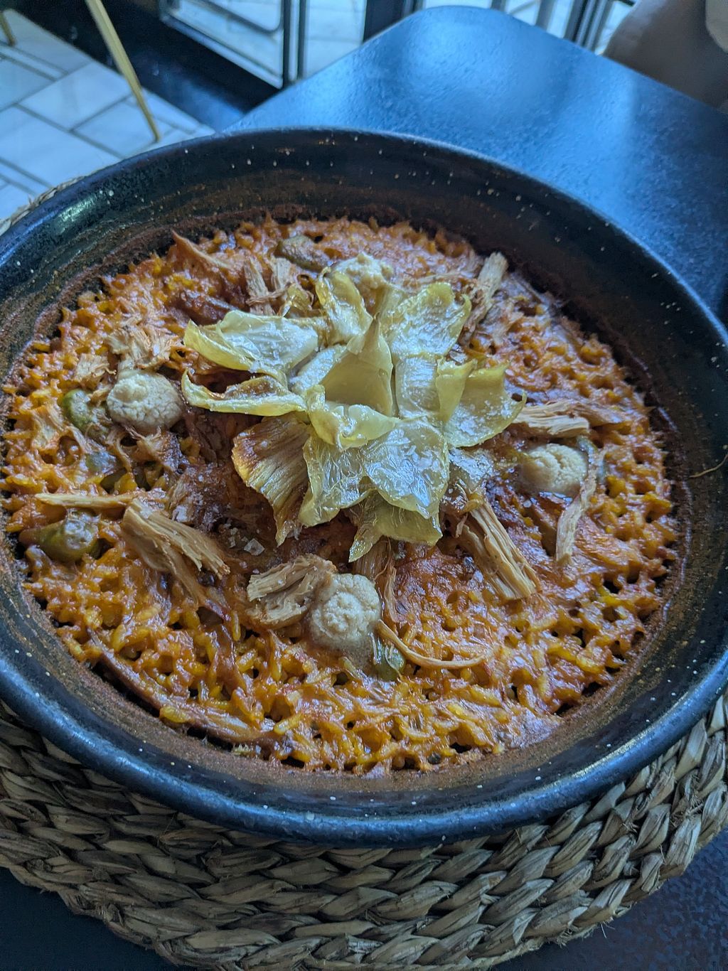 We ate here twice. I loved it the first time: the croquettas, artichoke, cauliflower wings, and paella were very tasty. Didn't love it so much the second time. The pizza was quite good but the pulled beef burger was super disappointing and overpriced for what it was: the burger bun is small and they literally only put the seasoned pulled beef and a small piece of green pepper in the burger. That's it. Dry and without much of a sauce. The burger felt like an after thought given the creativity of the other dishes. They also didn't have the chocolate cream egg dessert both times we visited and one of the wait staff seemed a little brusque.
