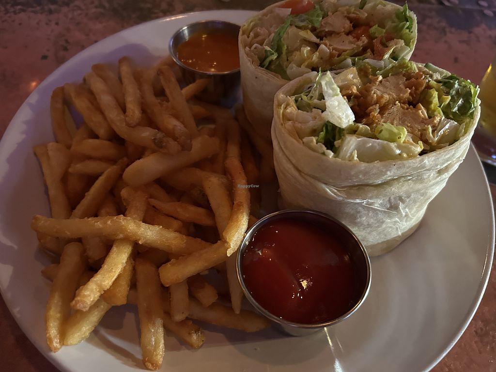 I got the vegan chicken Caesar wrap and I was pleasantly surprised by how good it was. Got a side of fries too which were also very good.