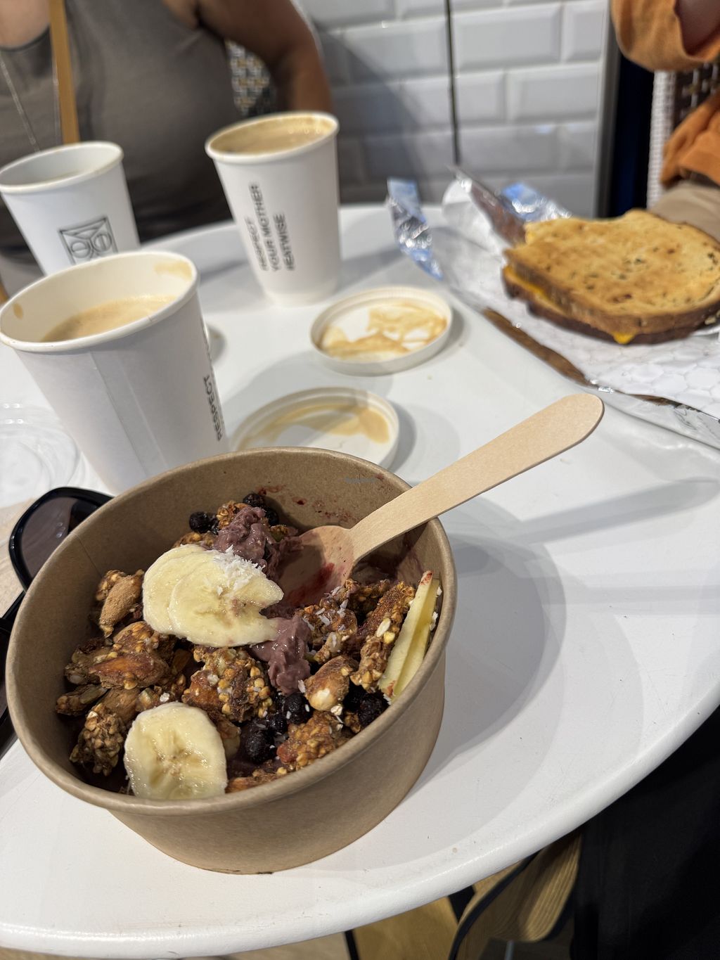 The food actually came out a little faster, my açai bowl was OK, different than other ones I had had but still decent. My friends grilled cheese sandwich was the driest of dry, no spread or anything unlike the way I've had it at other outlets.