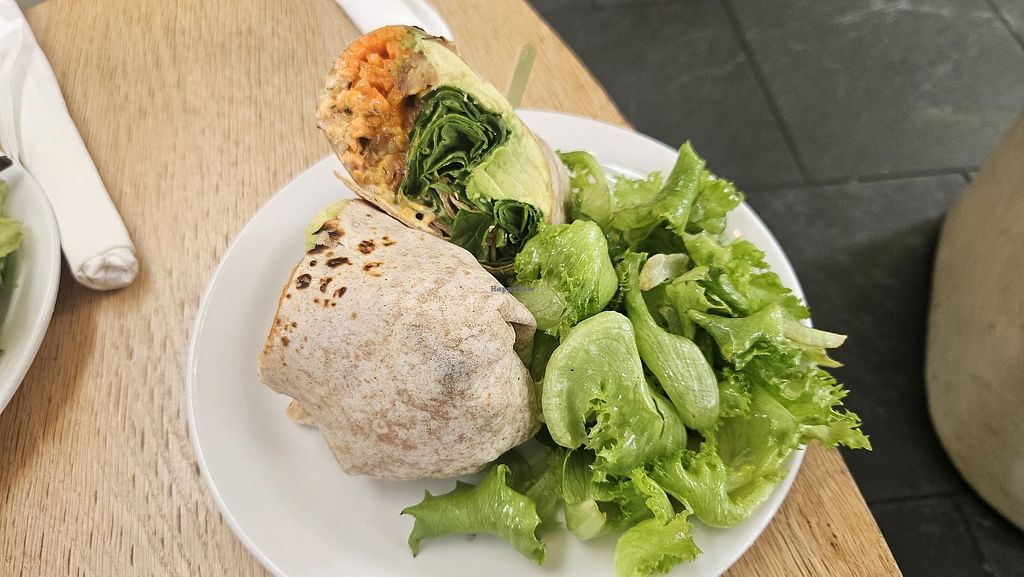 Read moreWe had a breakfast burrito, buffalo tempeh wrap, matcha almond shortbread, blueberry walnut muffin, American coffee and golden milk latte (turmeric, spices and maple syrup!) and everything was delicious.