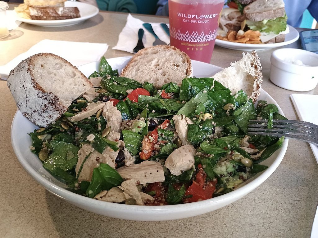I'm glad to finally get to try their plant based chicken and I was surprised for the texture and well flavored it is. They have a lot of grat salads that can easily be vegan by omitting cheese. The kids menu has a peanut butter and jelly sandwich 🤤