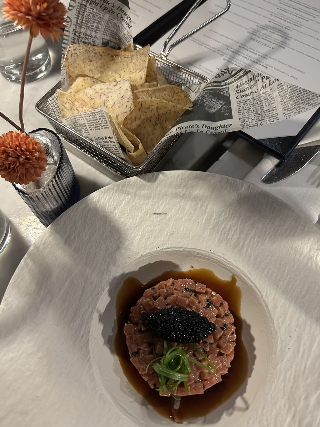 Amazing. Highly recommend. Elegant but not pretentious. I had the Ponzu Glazed “Salmon”, which was fantastic. My friend enjoyed the Yuzu Spicy Tuna Tartare, which she said was very fresh. Cocktails were excellent (recommend the Smokey Petal with mezcal) and you will never believe the rich Chef’s Cookie Skillet is vegans. I will be back.