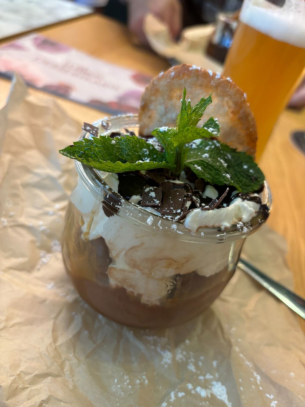 Der als Glücklichmacher in der Karte geführte Nachtisch bestand aus Schokoladeneis, Banane, Salz-Karamell- und Schokoladensoße. Sehr lecker und mein Highlight des Abends.