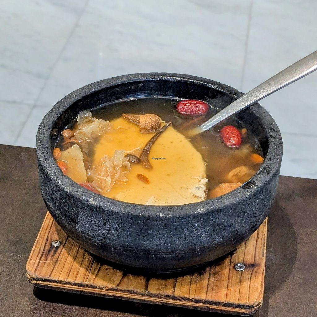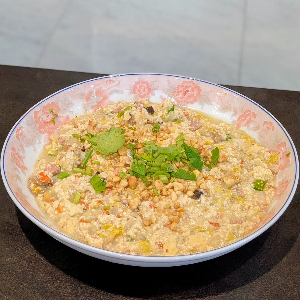 Small Chinese vegetarian eatery offering eggless and allium-free (no onion or garlic) cuisine with a Putien influence. The menu includes Mala Hotpot (a communal dish where items are cooked in a spicy, numbing broth), Tze Char (a selection of stir-fried dishes), Yong Tau Fu (tofu and vegetables, traditionally stuffed with a paste), wonton noodles, a daily soup, and other dishes served with rice. Open Mon-Sun 8:00am-8:00pm.