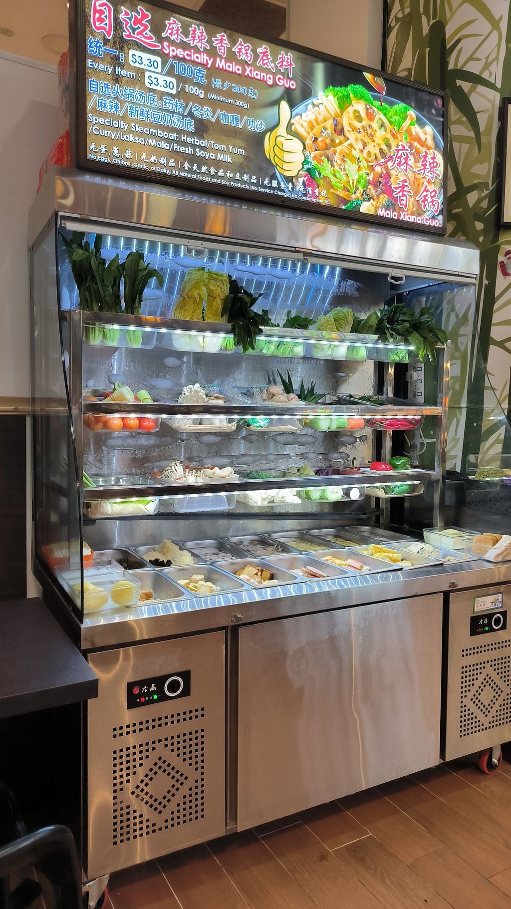 Located inside Somerset 111 when you enter the mall. Friendly staff and offer a great variety of vegetarian/vegan food, including self-pick Mala pot.