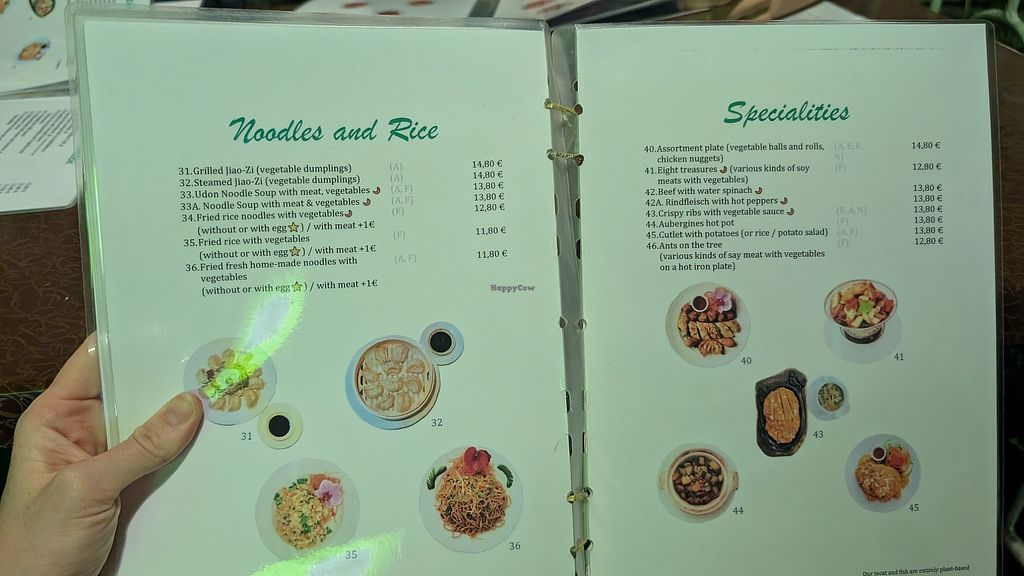 Vegetarisches Restaurant, nicht veganes (nur einer kleiner Teil) ist mit Stern markiert. Auch Buffet erhältlich, sehr gut.