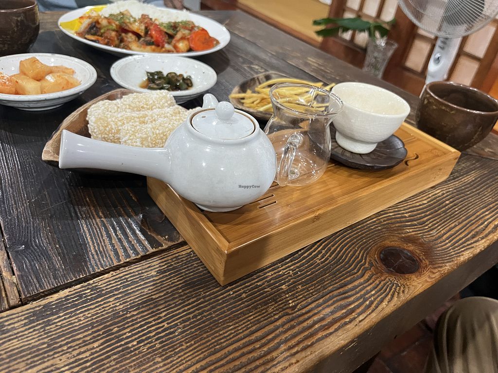 An all-vegan hidden gem has a variety of Korean traditional tea selections and a few Korean dishes. Located on the 2nd floor of a donkatsu restaurant. 부산광역시 연제구 토곡로 4 (2층). ※토요일은 예약제 (reservation only on Saturdays) 051)751-3344. Lunch is served 12:00 pm - 3:00 pm; dinner 6:00 pm - 8:00 pm. Accepts debit cards. Open Mon-Sat 12:00pm-10:00pm. Closed Sun.