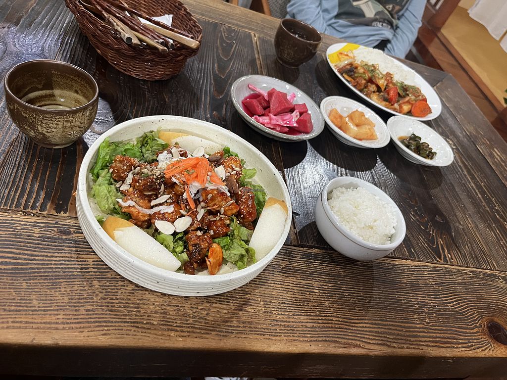 Read moreI had the kong steak and chicken. The tofu chicken was my favorite, it was crispy and flavorful. The steak was juicy and hot. There were plenty of cool apples and salad to wash it down!