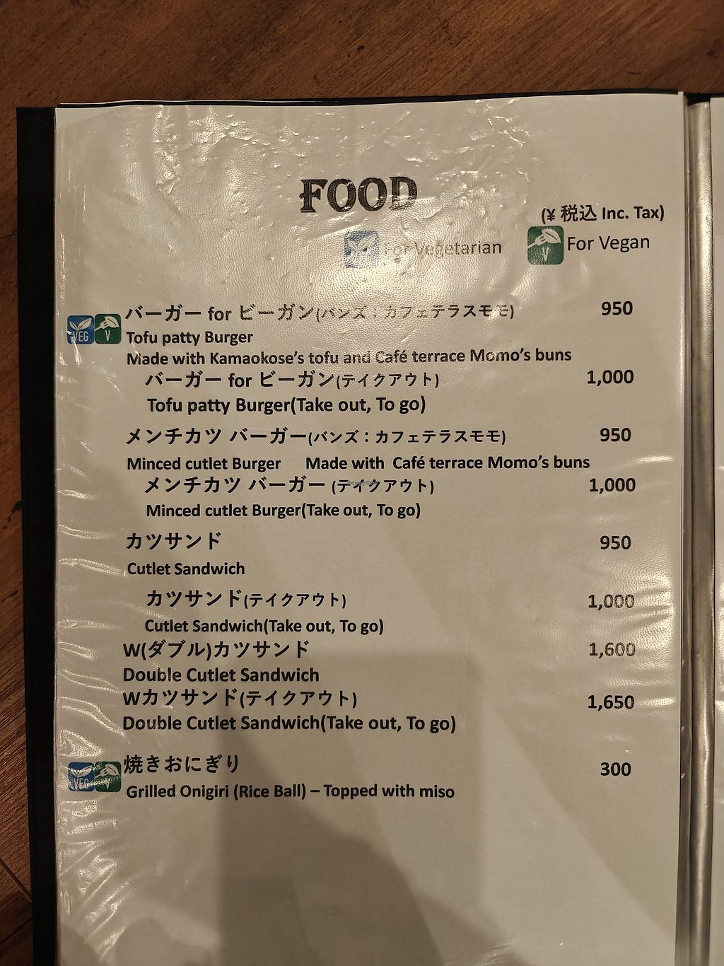 I went with someone that isn’t vegan and we could eat together. The owners spoke both English and Japanese and could explain different food and the local businesses. Overall we enjoyed our time.