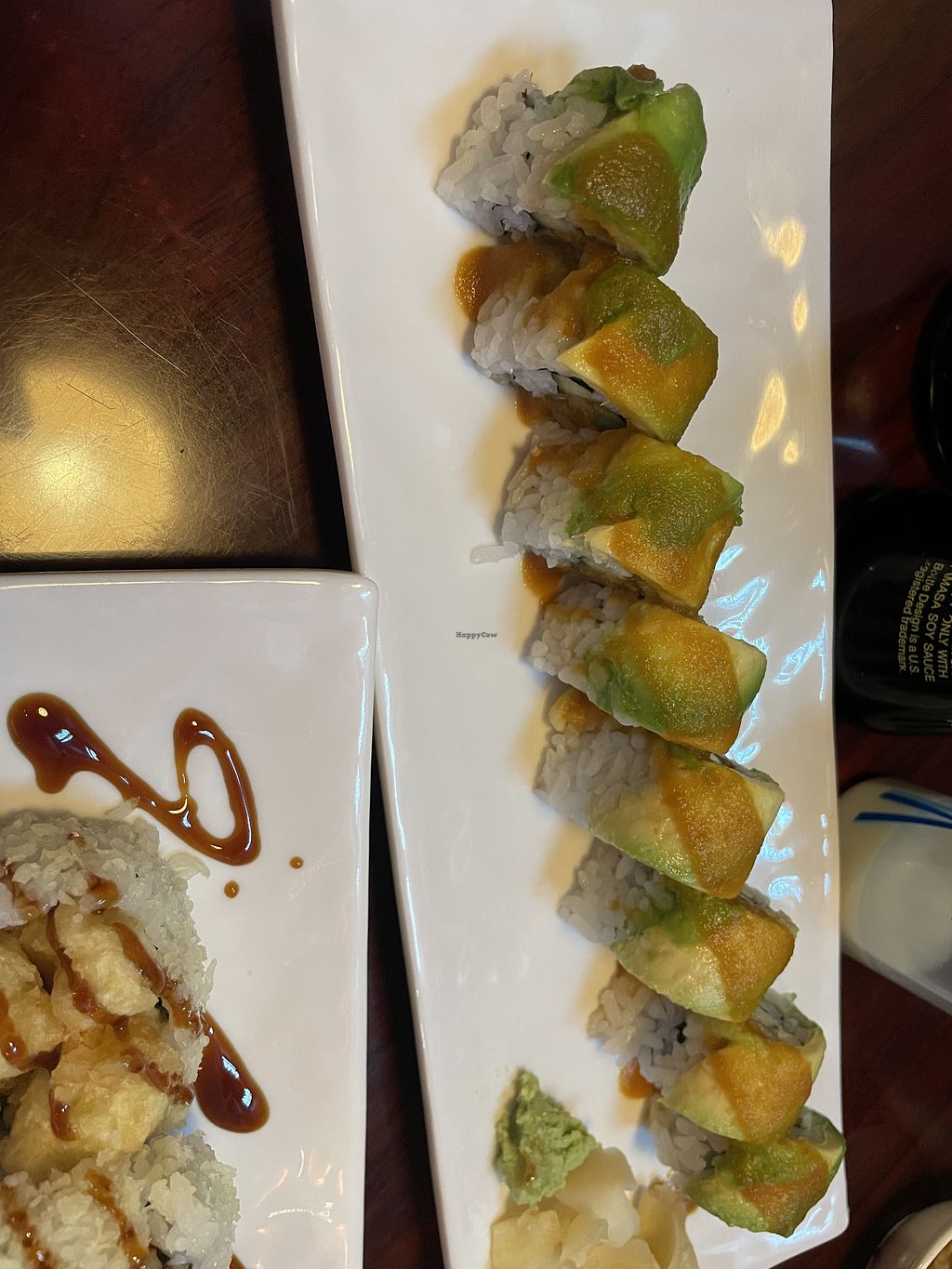 This was my first time coming to a sushi place since going vegan. I had to travel a little bit but it was so worth it! I loved my rolls! They were delicious and I was thrilled that they had more then one option. I will definitely be back! I love and miss sushi but this places rolls were so good I didn’t feel like I was missing out on anything... I highly recommend, and my husband a meat eater said he loved his options too!