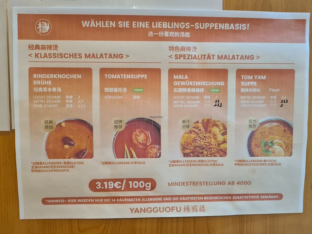 Serves meat, vegan options available. Chinese hotpot chain. Offers vegan broth with a choice of ingredients like vegetables, tofu, noodles, and more. Open Mon-Sat 11:30-22:00, Sun 12:30-21:30.