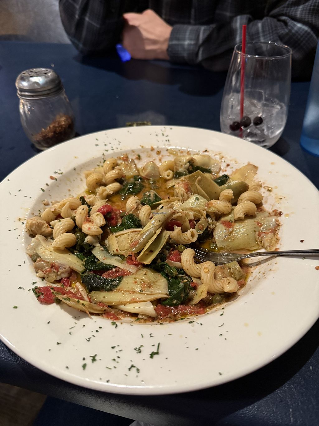 I ordered the Tuscan Shrimp Pasta without the Shrimp. The owner told me all the other ingredients to include the pesto are vegan. It’s incredible, highly recommended. I believe they have live music every weekend to top it off.