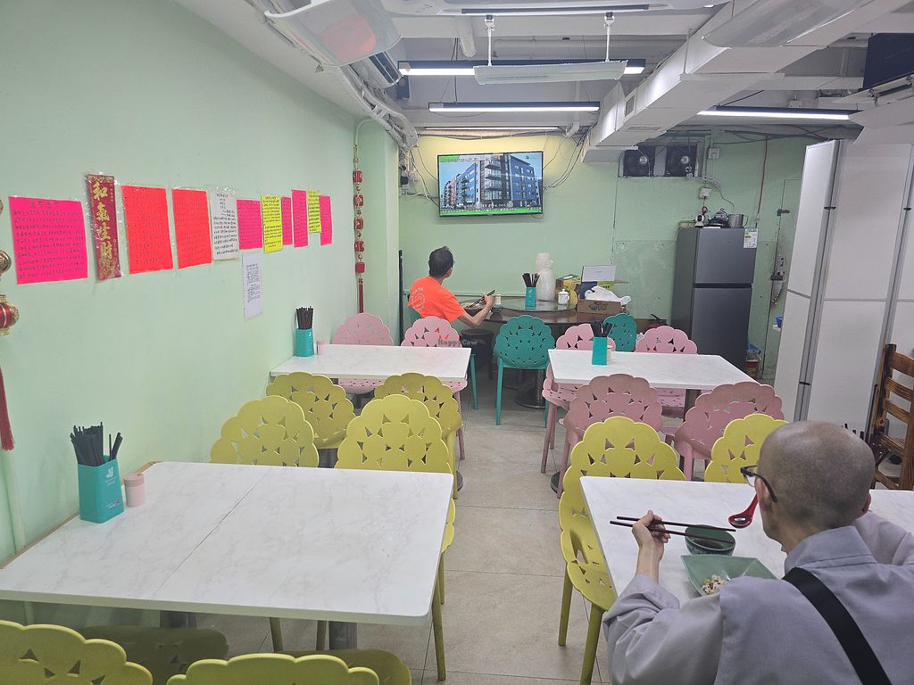 I almost missed the entrance and then thought I'm wrong but it is very- let's say- hided and small, second floor on the left. The food I had was good and it's so cheap (cash only or octopus card), a nice lady served me and I might return someday. Free tea and water provided. No desserts or sweet stuff unfortunately.