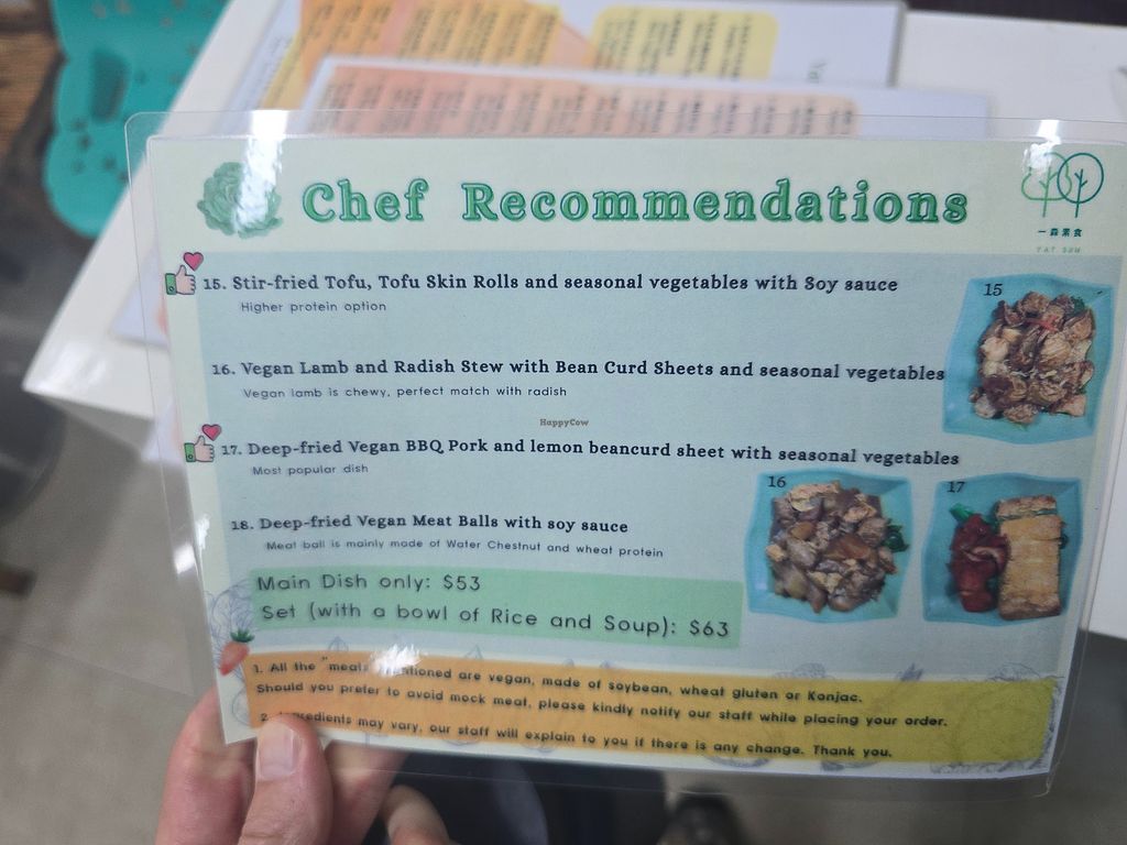 A no frills Cantonese/Chinese restaurant in HK with lotsss of options😄make sure to look at the chefs recommendation menu as you can see vegan char Sui! A must try in HK!