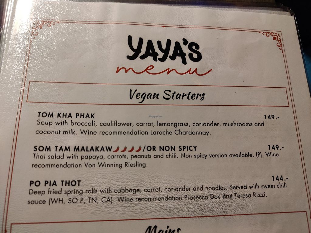 A positive experience at Yaya's. They have vegan sections on the menu for starters and mains. I ate Paneng curry and my sister ate Pad King Namphung. We both enjoyed our food. Big and filling servings. We had mango Sticky rice for dessert.