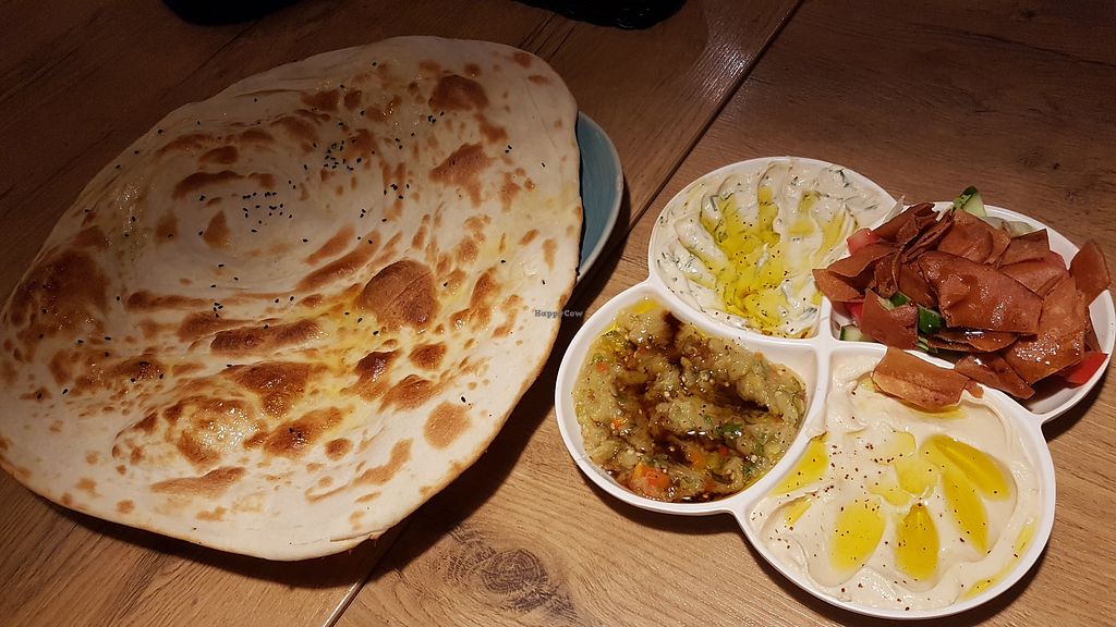 Huge restaurant with very accommodating and friendly staff that knows about veganism. We had the vegan starters (consisting of 2 types of hummus, baba ganoush and fresh veggies) as well as 3 mains, and we were taken to food heaven and afterwards to food coma. Both foul and veggies stew, which are vegan by default, were on such a different flavour palette we never tasted, it was really mind-blowing, yet so addicting and delicious. Huge portions as well, but frankly we couldn't stop eating as it was too good. After ordering we had to wait some time, but our stews were served sizzling hot in clay dishes, also the bread was fresh out of the oven as well. Loved the thick mango smoothie as well. The place is huge and not the calmest, but I saw an elderly German couple hang out for hours in this place, so I consider it a very warm, cozy and welcoming place. Also our waiter asked at least 4x if everything was alright, and cashier refused to take tips. Highly recommended restaurant!