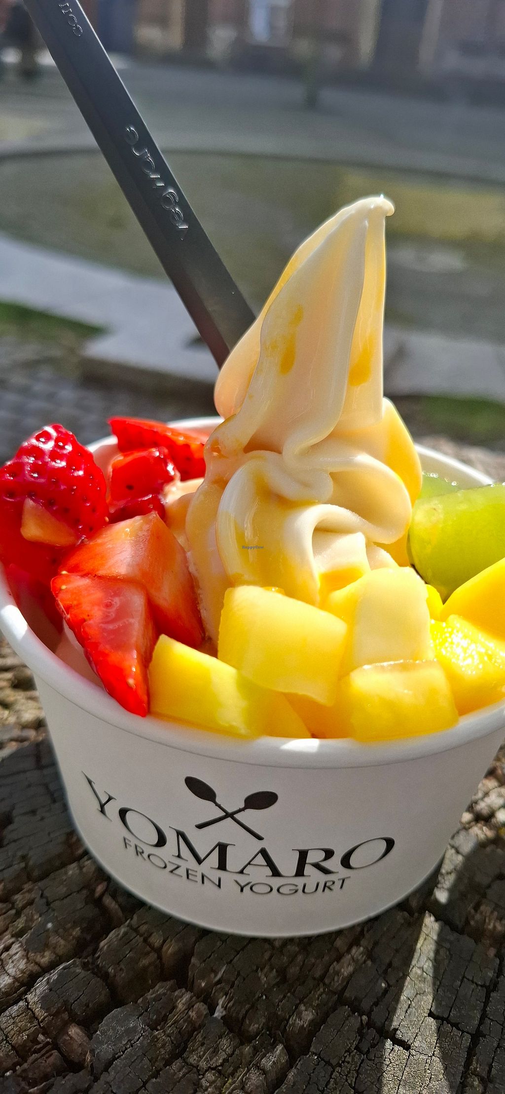 Yomaro offers vegan frozen yoghurt, which is a major plus. The fruit toppings are fresh and plentiful, and in my view, the best choice regardless of dietary preference. The visit was during a very busy period, with a long queue and staff working hard to keep up; service was acceptable but not particularly cheerful. There was also some uncertainty among staff about which toppings beyond fruit were vegan, which could be improved. Overall, a good place for a vegan treat, with room for clearer information.