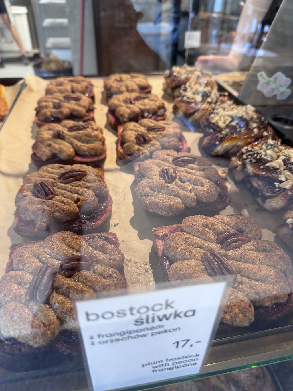Modern fully vegan bakery with sweet and savoury bakes, I tried the bostock malina and rogalik z róza. Really enjoyed both these. Quite a walk from the Old Town but worth it to try some different options. Paid 20PLN for both items.