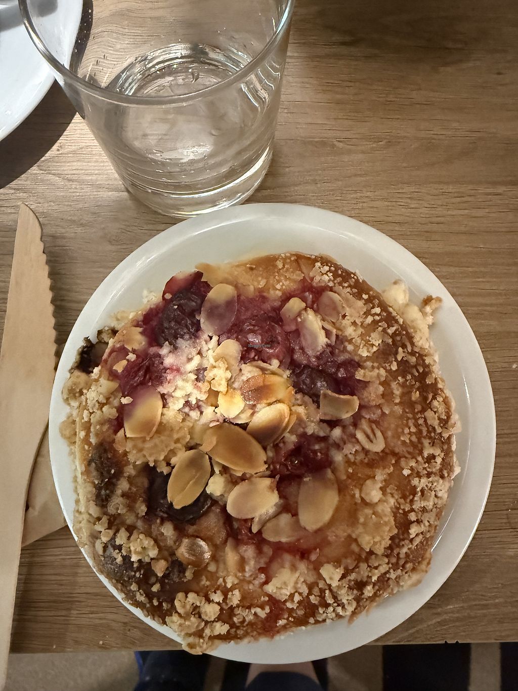 Read moreThey hade some buns, so I ordered two and a coffee. It tasted very nice. At the end they had one more thing ready for the customers, so I took it to go. It was kind of like a shortbread with cream on top and blackberries. This was really good, it is on the picture