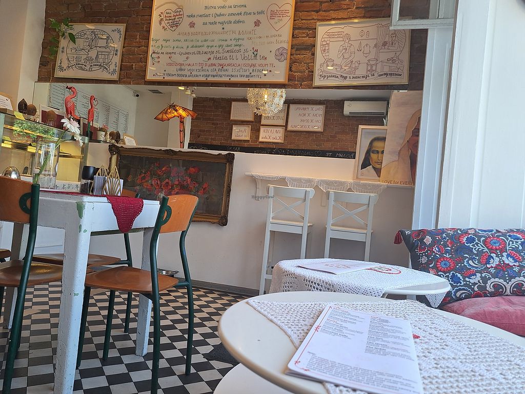 Charming place in downtown Belgrade with home-like atmoaphere. Cocoa is their flagship offering and there are numerous delicious raw vegan meals from soups, burgers, wraps/pancakes, to cakes. Gotta try their cocoa and - my favourtw salty pancake (pancake itslef is made of dehidrated banana) filed eith spinach, arugula, drued tomato, mint leaves, and some creamy spread - hummus probably ❤️ The owner is lovely Ksenija who also holds cocoa ceremonies after having been initiated i to it in Guatemala.