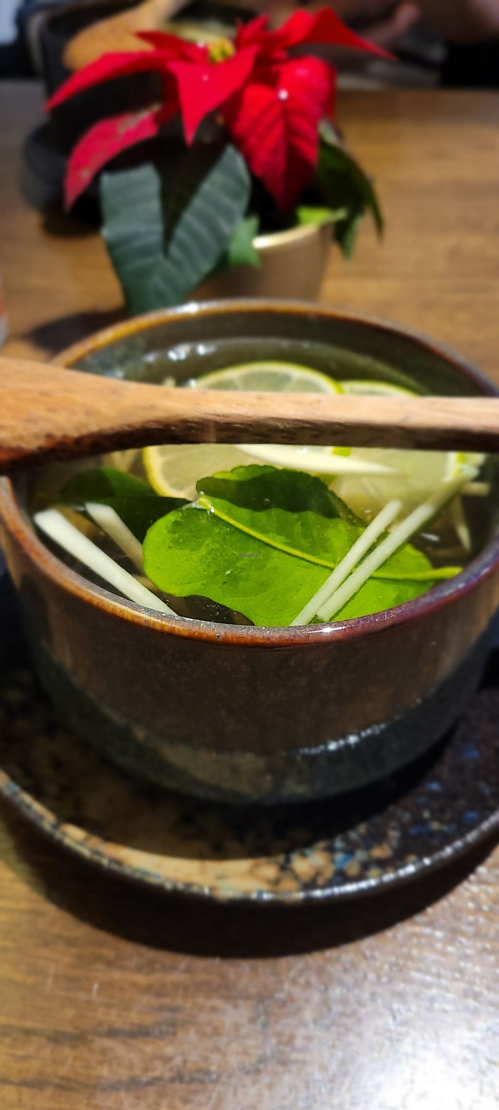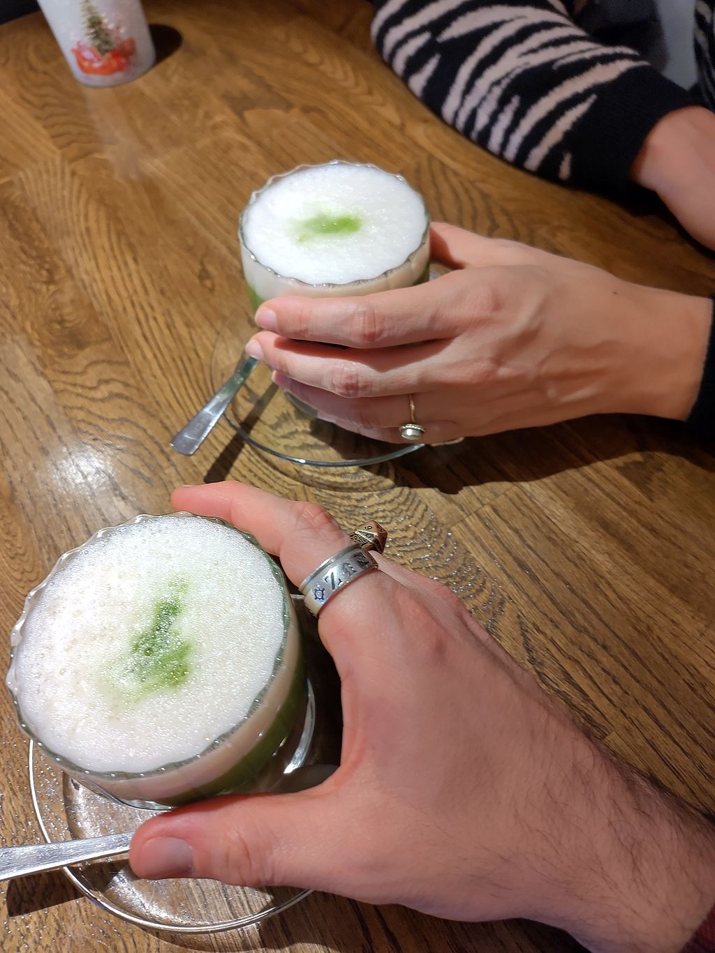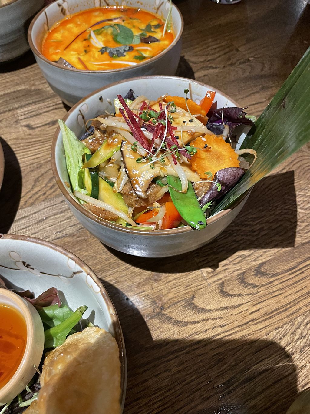 We had white pearls as a starter and golden soup and peanut cream as mains. The dumplings were nice with an intense sauce. The mains were tasty as well, but could have used more flavour for the curry and peanut. The tofu of the curry had little going for it but the shrimp in the cream were nice. Our drinks were good, mint lemonade and green dream. All in all, a good experience but not exceptional.