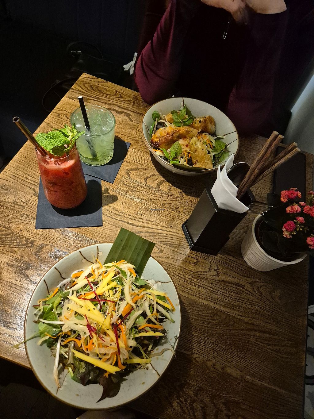 Read moreIch hatte ein Mango Tango (Mango Salat), dieser war frisch und das Dressing super lecker, dann noch eine Monk Bowl. Tofu mit Chili, Zitronengras, Pilzen, frisches Gemüse und vietnamesische Kräuter. Klang lecker, ist lecker.