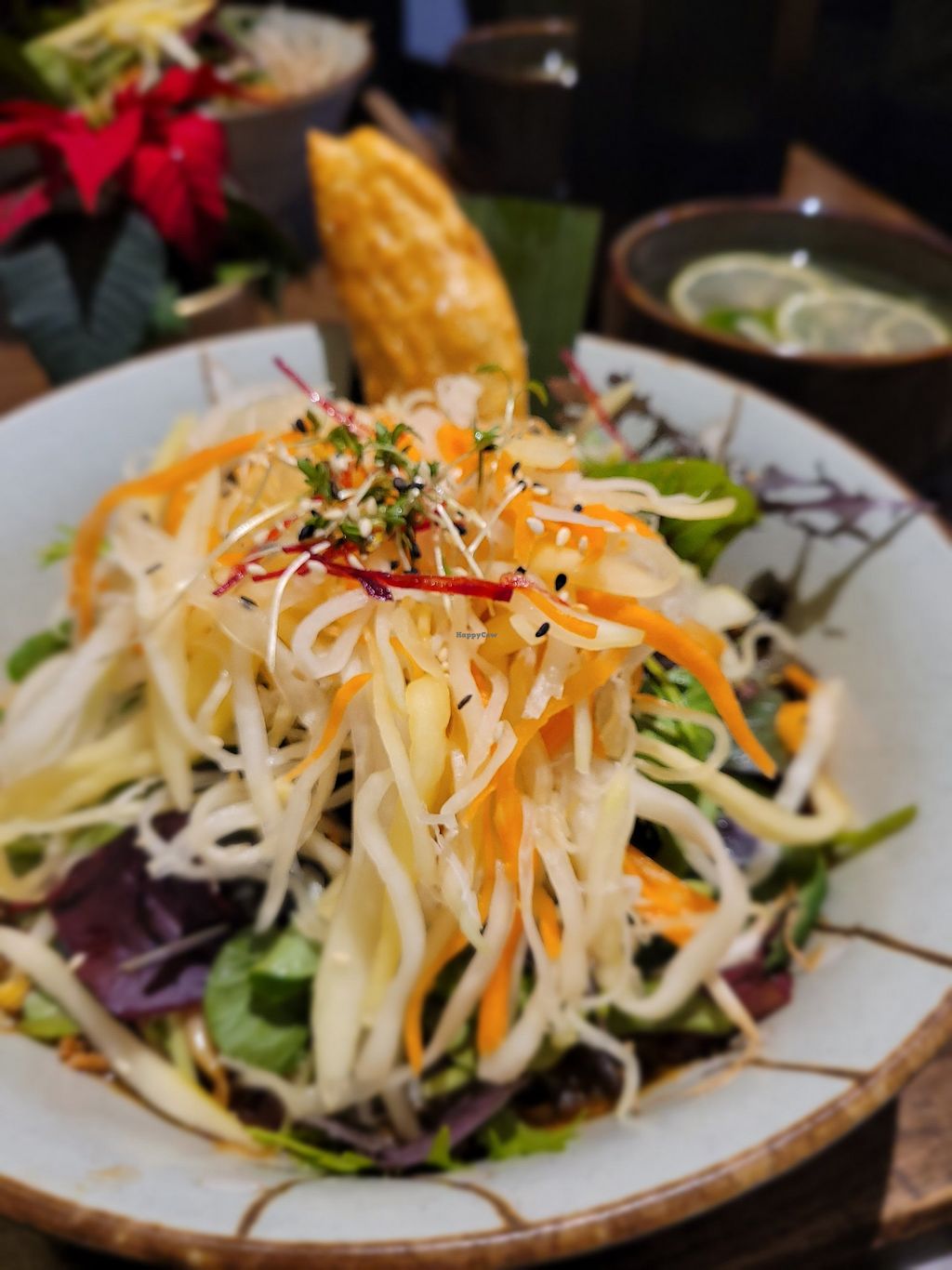Really nice decor and cosy restaurant with super friendly staff. Fresh food with lots of options! Great that all is vegan. On the negative side, there is too little spices and chili so the food is somewhat lacking in taste. The mango sallad was almost frozen and too watery. The ”zenchay pocket” is frekkin amazing. Get only those and you will be set!