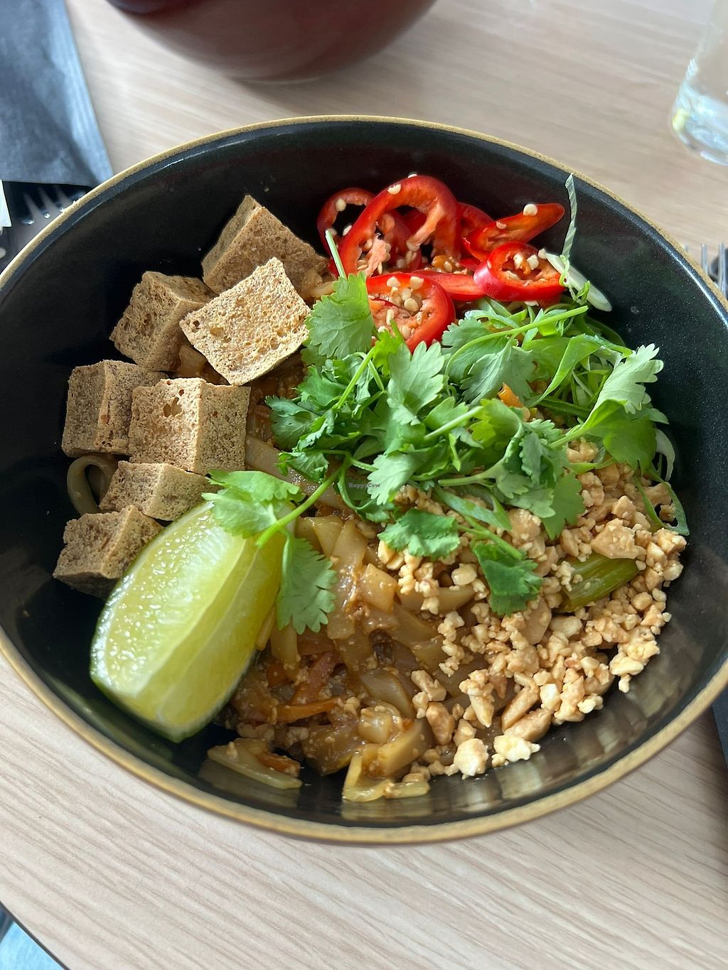We ate here with omnivore friends and everyone liked it a lot. We shared the mezze, then had the pad Thai (tasty!) and kimchi chicken burger (also!).