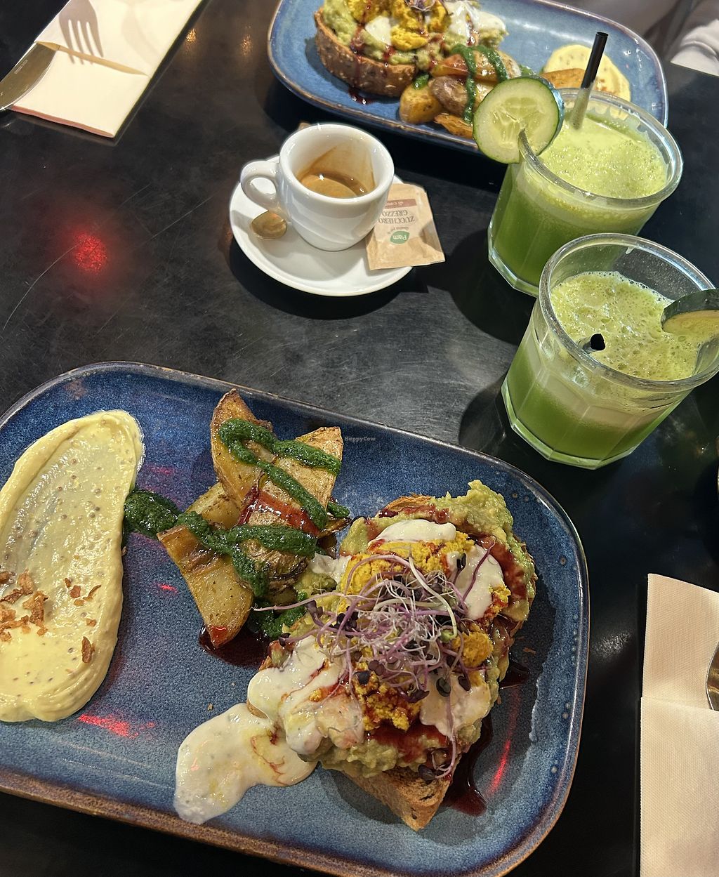 2x brunch. Porridge, chia, toast, juices, cafe,