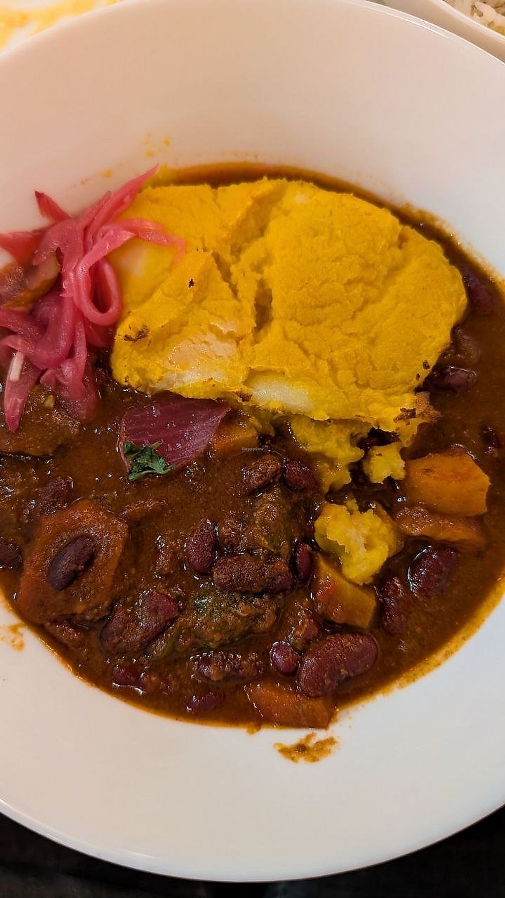 Read moreWe ordered a few dishes to share, including a vibrant-looking dish with mixed vegetables and mushrooms, topped with a bright green pesto. It was full of flavor and the rice was cooked perfectly. We also had a plate from their amazing salad bar, which was a huge bonus. It had a bit of everything: freshly shredded carrots, a refreshing cucumber and tomato salad with what seemed like a mix of dill and other herbs, and a hearty potato salad. It was the perfect complement to the main dish.