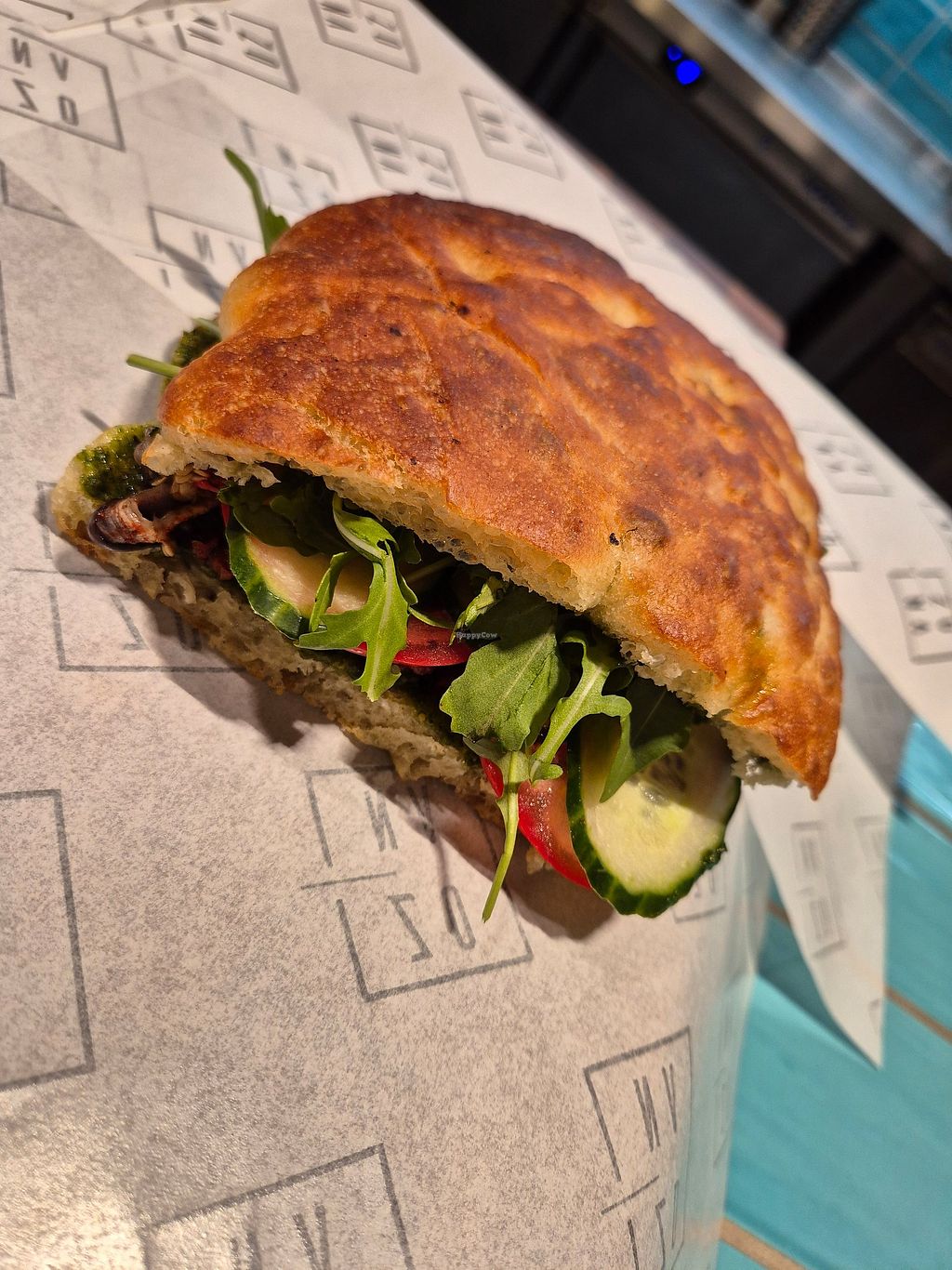 Serves meat, vegan options available. Italian sandwich shop serving clearly marked vegan items. Vegan offer includes focaccia with glazed tofu & red cabbage salad, focaccia with baked eggplant & guacamole, and dips & spreads. Has soy milk for coffee. Open Mon-Sun 09:00-20:00.
