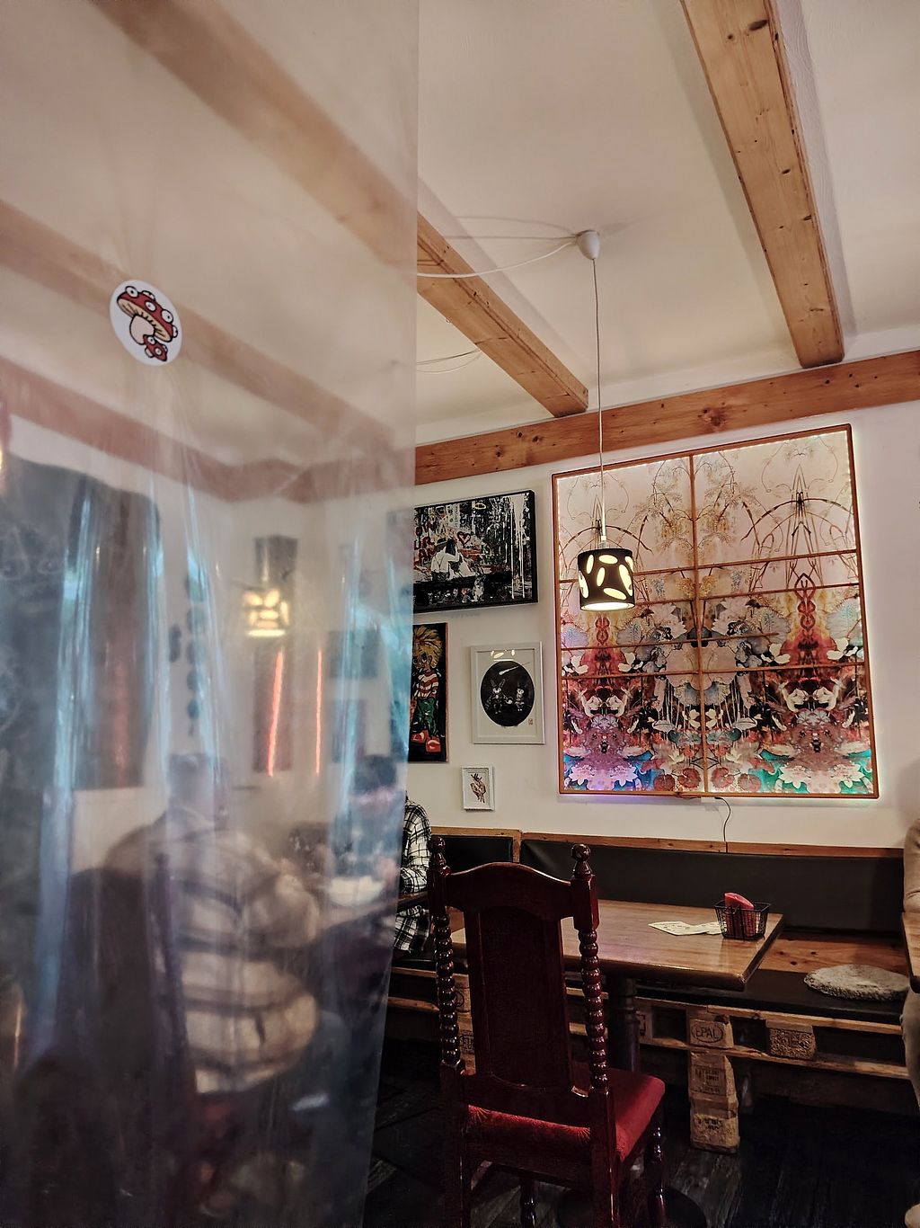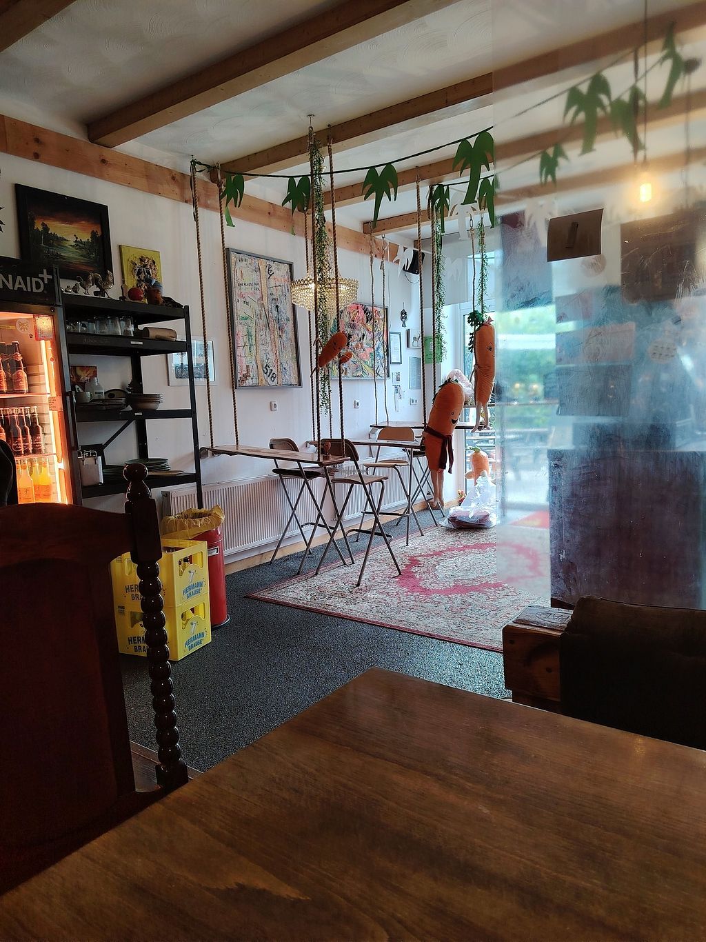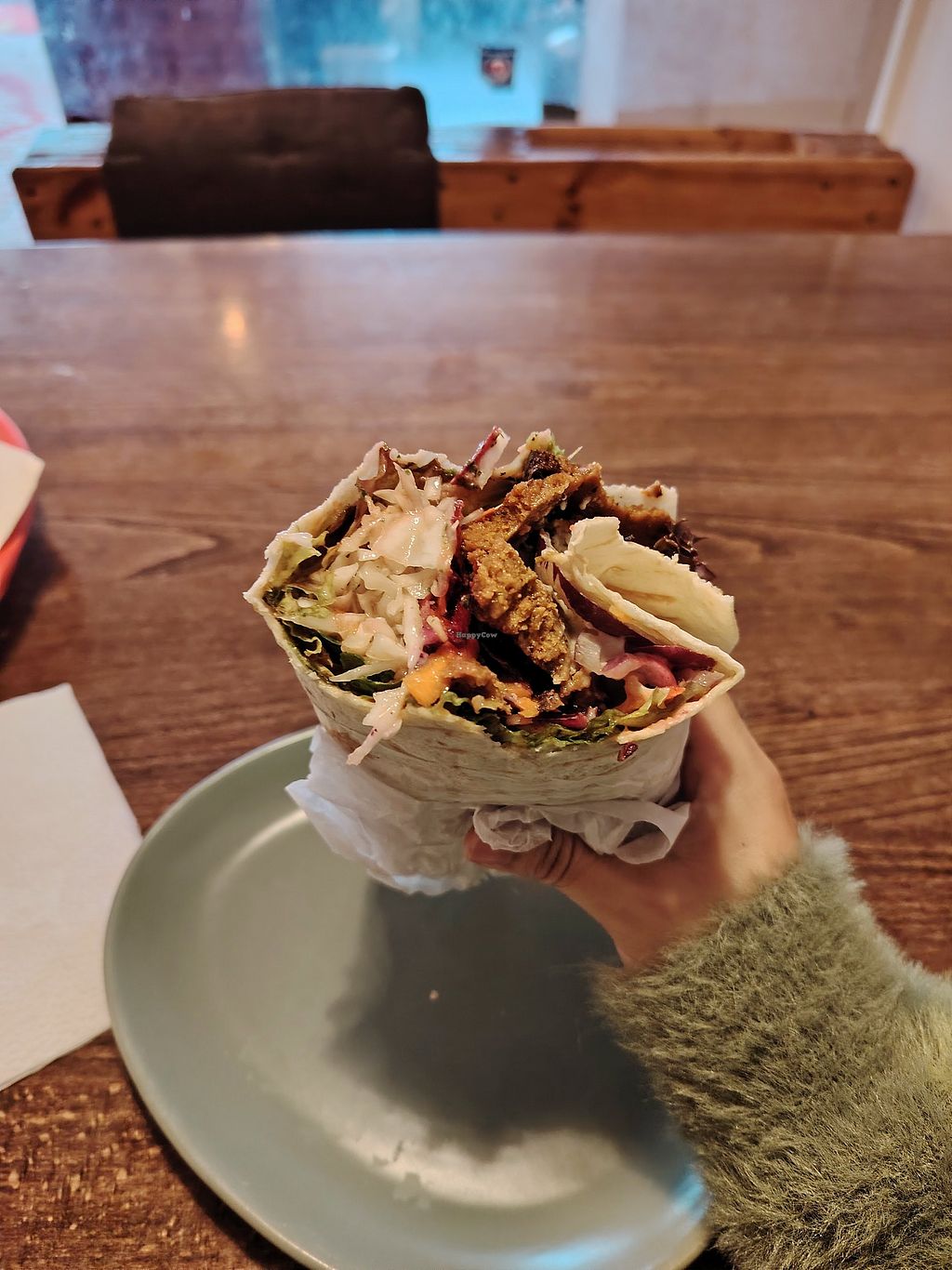 The vöner wrap was messy to eat, but it was absolutely delicious. I could feel the taste of it several hours after and salivate by the thought of it. The atmosphere there I would say was eccentric and the first thing that meets you when you enter is a piece of fabric you have to go through. They have cute carrot plushies in the seating area as well and there is a lot going on on the walls, which contributed to the overall experience in addition to the psychedelic/trance/ethereal music.